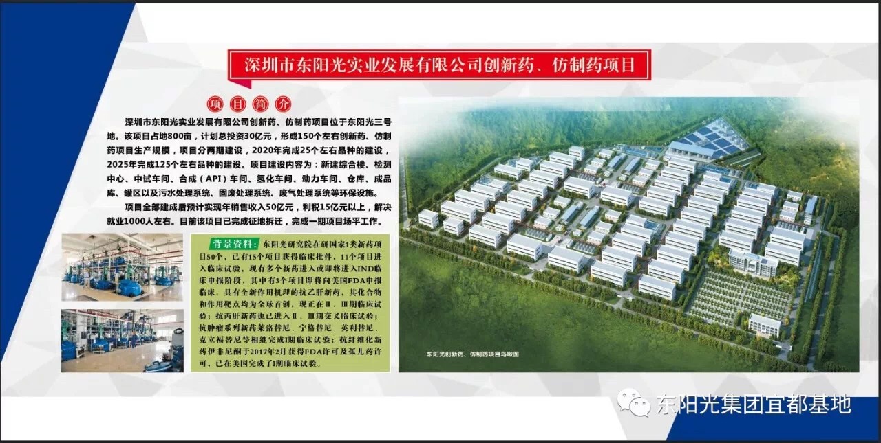 “國家創(chuàng)新藥、仿制藥生產(chǎn)基地”項目總投資30億元,規(guī)劃用地800余畝,承接東陽光自主研發(fā)的150余個新藥、生物藥、首仿藥、歐美仿制藥、中國仿制藥的產(chǎn)業(yè)化。
