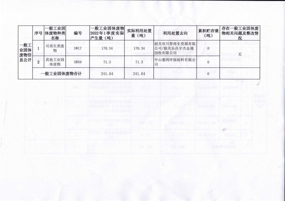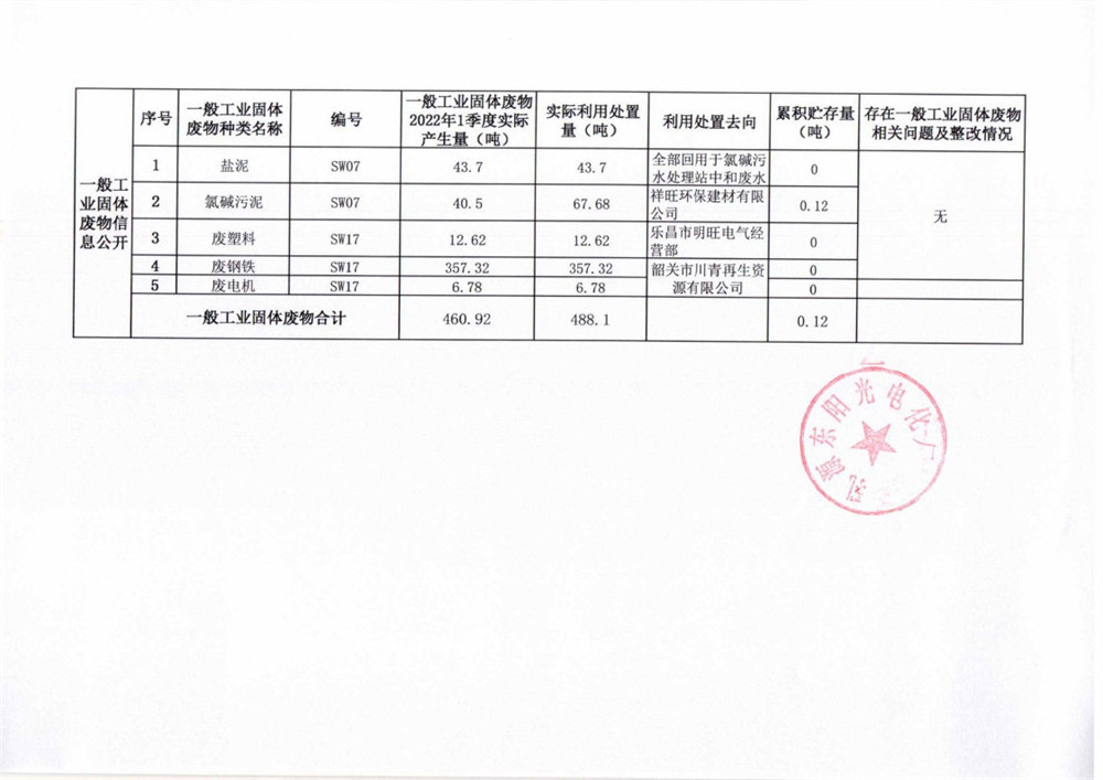 Information disclosure of solid waste environmental pollution prevention and control in the first quarter of 2022 by solid key companies (electrochemical plants, fluorine limited, refined foil)